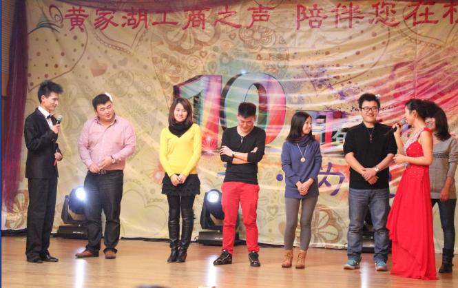 晚会开场播放了一部祝福视频,武汉科技大学、武汉纺织大学、武汉工程大学等近十所高校广播台纷纷发来祝福,庆祝黄家湖工商之声十周岁生日。