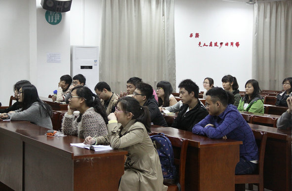 对于同学们热切关心的应聘问题,徐行学长从应聘的方式,单位的选择,简历的制作,着装以及面试的技巧等方面做了详细的解说。徐行介绍说:“网络招聘是一个很好的途径,因为你足不出户就可以像你心仪的单位投上你的简历。而简历的制作一定要朴实,有什么就写什么,因为这样会让单位的领导感觉到你的真诚,如果你有丰富的实习经历,一定要写在显眼的位置,这会让用人单位对你更加青睐。”而在着装上,徐行特别指出,一定要身着西装,这样才能体现出对待工作的尊重。在面试的技巧上,作为“面霸”的徐行学长笑着说:“没有必要去担心,经历是最好的调节剂。这家不行换一家,面试的多了,自然就不害怕了。”