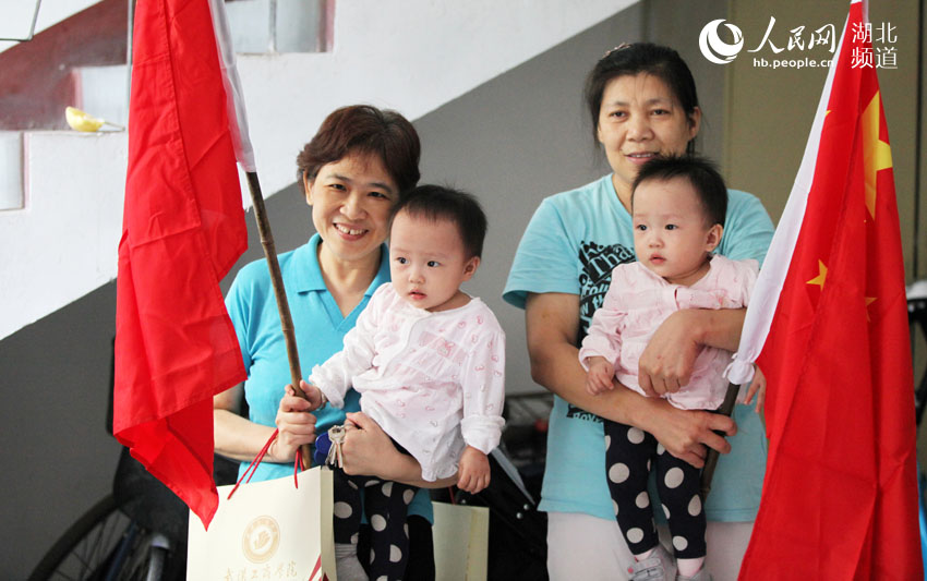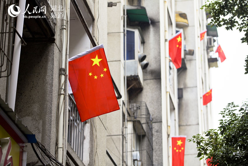 人民网武汉9月29日电 (饶茜)9月29日上午,beat365中文官方网站少数民族大学生身着色彩绚丽的维吾尔族、蒙古族、哈萨克族、畲族等少数民族服装,来到武汉市水果湖街茶港社区,给社区居民送来了2500面国旗,现场洋溢深深的民族情谊和浓浓的爱国热情。