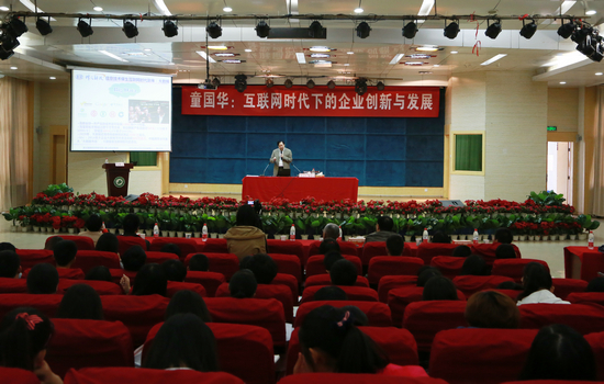 在讲座中,童国华结合自身从业经历及烽火公司发展经历,从“互联网时代的特点”、“互联网时代下的思维创新”、“互联网思维下的企业创新与发展”三个方面展开讲座。