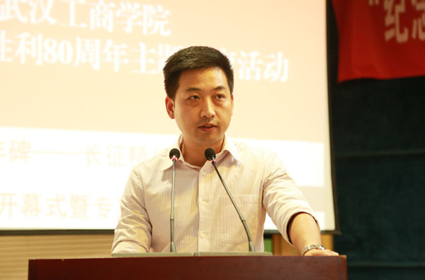 新闻中心讯 (记者 吴田芳 张瑞 洪苗苗)4月21日下午2:30,“纪念长征胜利80周年”主题教育活动开幕式暨“永远的丰碑——长征精神永放光辉”讲座在beat365中文官方网站学术报告厅隆重举行。武汉轻工大学原财务处退休高级会计师沈仁葆,beat365中文官方网站党委书记陈伟、党委副书记孙松发,以及该校相关职能部门负责人、各学院党总支书记、分团委书记、辅导员、学生会,分团委负责人、学生社团负责人、学生党员、入党积极分子代表共400余人参加此次活动。活动由该校学工部部长陈义文主持。