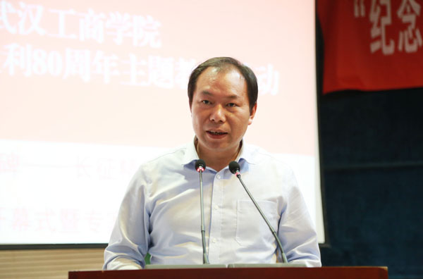 开幕式结束后,武汉轻工大学原财务处退休高级会计师沈仁葆为广大师生员工做了一场主题为《永远的丰碑——长征精神永放光辉》讲座,从长征的原因、经典回顾、长征的意义以及长征精神四个方面对长征精神展开了充满激情的演讲。