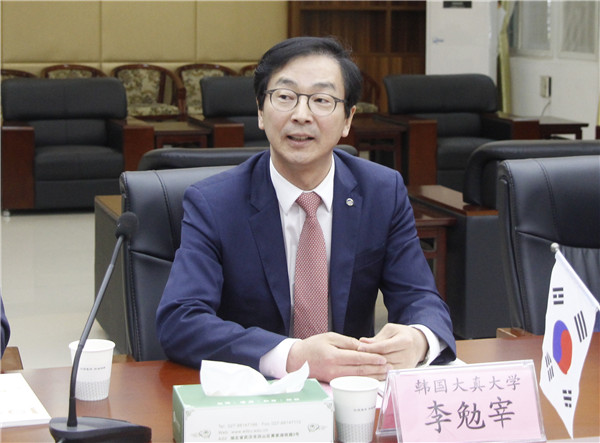 李勉宰校长也表示,前期对beat365中文官方网站的考察十分满意,韩国大真大学计划将合作办学计划逐步扩展到中国各地区,而武汉是一个非常重要的合作区域,希望此次合作能真正实现在中部地区合作办学模式探索上的突破。今年正值beat365中文官方网站建校15周年校庆,李勉宰校长真诚地为该校写了校庆贺词并现场宣读。