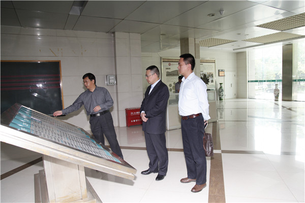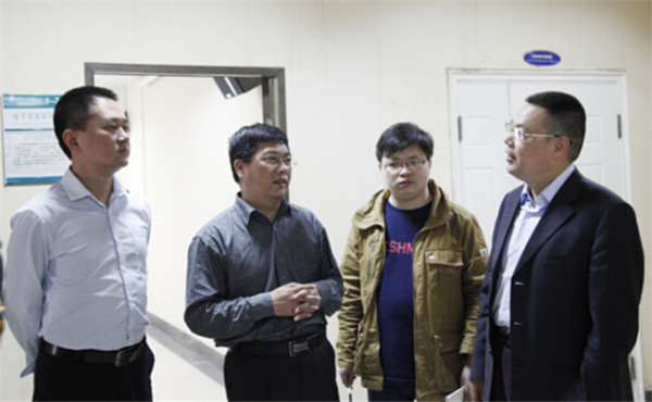 实验教学中心常务副主任颜爱国(左二)与来宾交流
