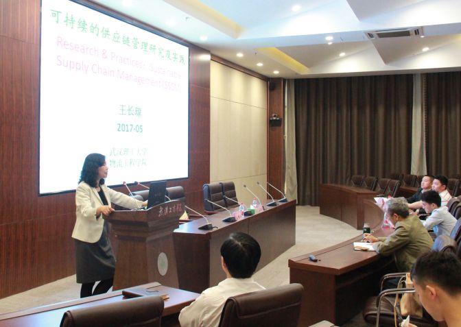 王长琼教授先后就SSCM的概念及框架模型、中国企业实施SSCM状况、中国优秀企业SSCM实践案例、热点研究问题四个方面,向大家阐述了可持续供应链管理的先进理念。她指出,可持续供应链管理是在当前经济环境中出现的全新的企业供应链管理理念,指供应链企业在追求自身发展的同时必须对其所面临的经济、社会和环境效益进行整体协调,实现经济、环境、社会责任一体化发展,实现三个维度效益的整体最大化。