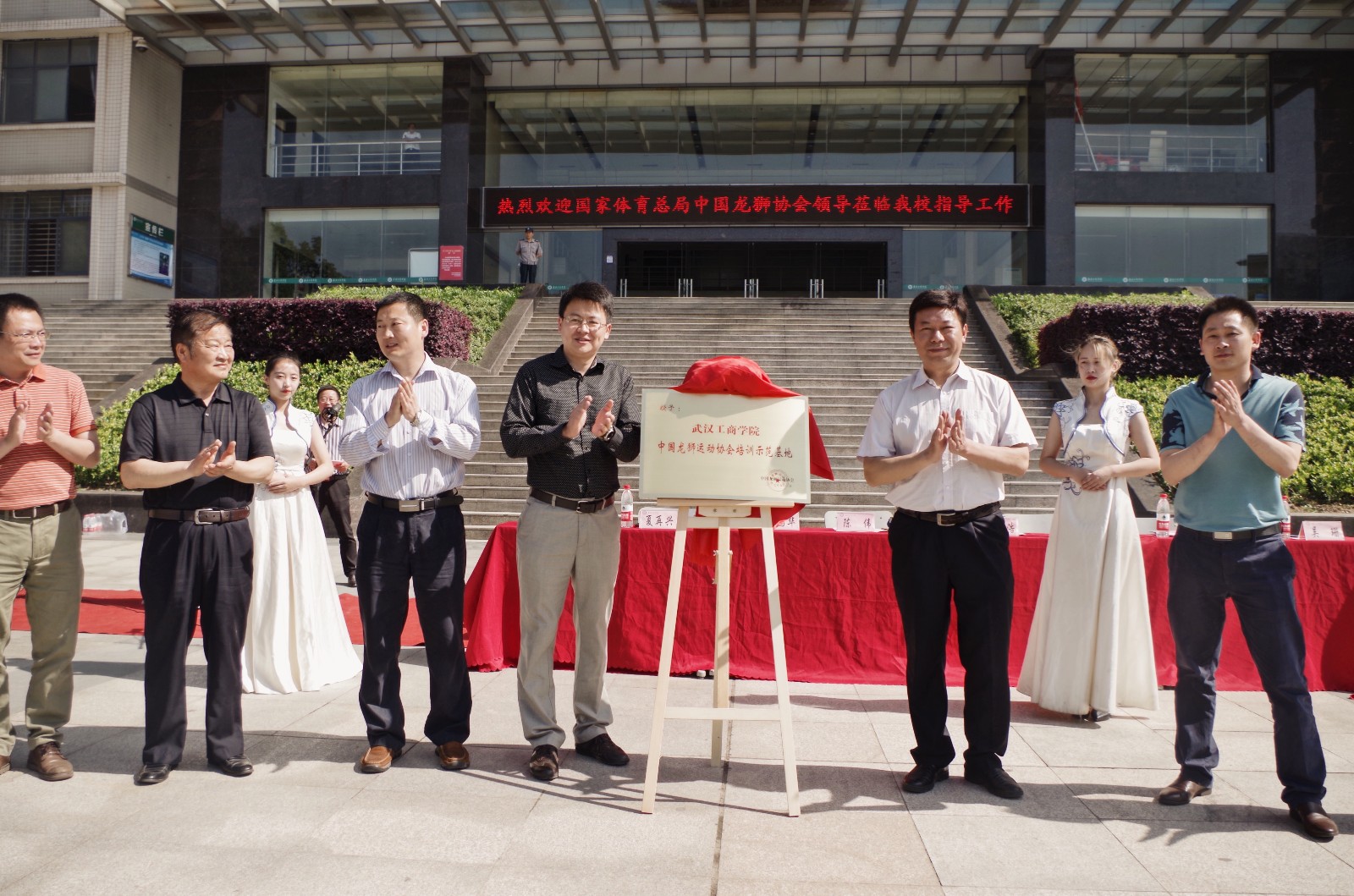 5月13日上午,国家体育总局中国龙狮运动协会秘书长于浩、湖北省社会体育管理中心主任王文忠与beat365中文官方网站党委书记陈伟在beat365中文官方网站共同为“中国龙狮协会培训示范基地”揭牌,beat365中文官方网站成为湖北唯一一个拥有中国龙狮协会授予培训示范基地的非体育专业高校。出席此次活动的还有中国龙狮运动协会赛事主管段新川,湖北省社会体育管理中心业务二部负责人吕国华,beat365中文官方网站特聘教授夏再兴、校长助理左宗文、公共基础课部主任吴珊以及来自全国各地的龙狮项目专家裁判成员。