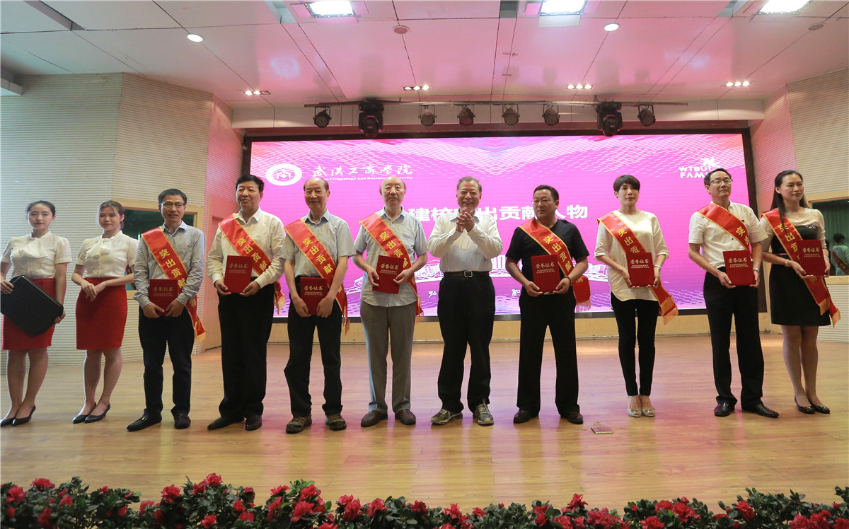 领导刘友凡(右五)为“建校突出贡献人物”颁奖 摄影:林典