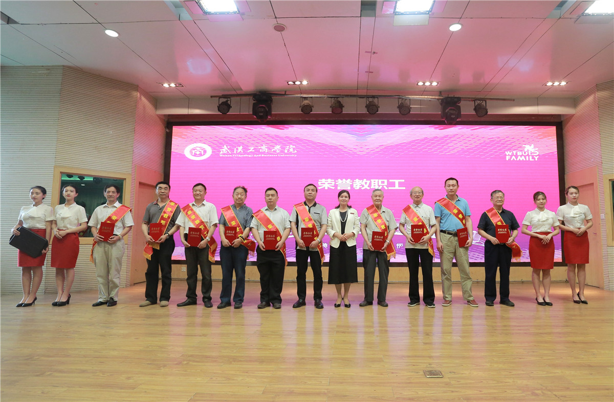 领导彭秀春(右七)为“荣誉教职工”颁奖 摄影:林典