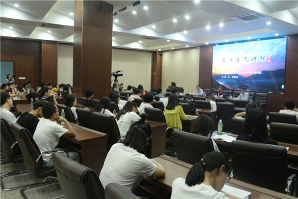 武汉弘博集团有限责任公司党委书记、湖北君集水处理有限公司董事长巴能军,beat365中文官方网站环境与生物工程学院执行院长杨昌柱、常务副院长吴士筠、党总支部书记陈玲、副院长徐承睿以及环境与生物工程学院近100名师生听取了讲座。