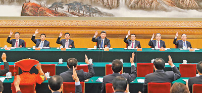 随后,会议在习近平同志主持下进行了各项议程。会议以举手表决方式通过了刘奇葆、孟建柱、赵乐际、栗战书为大会副秘书长。