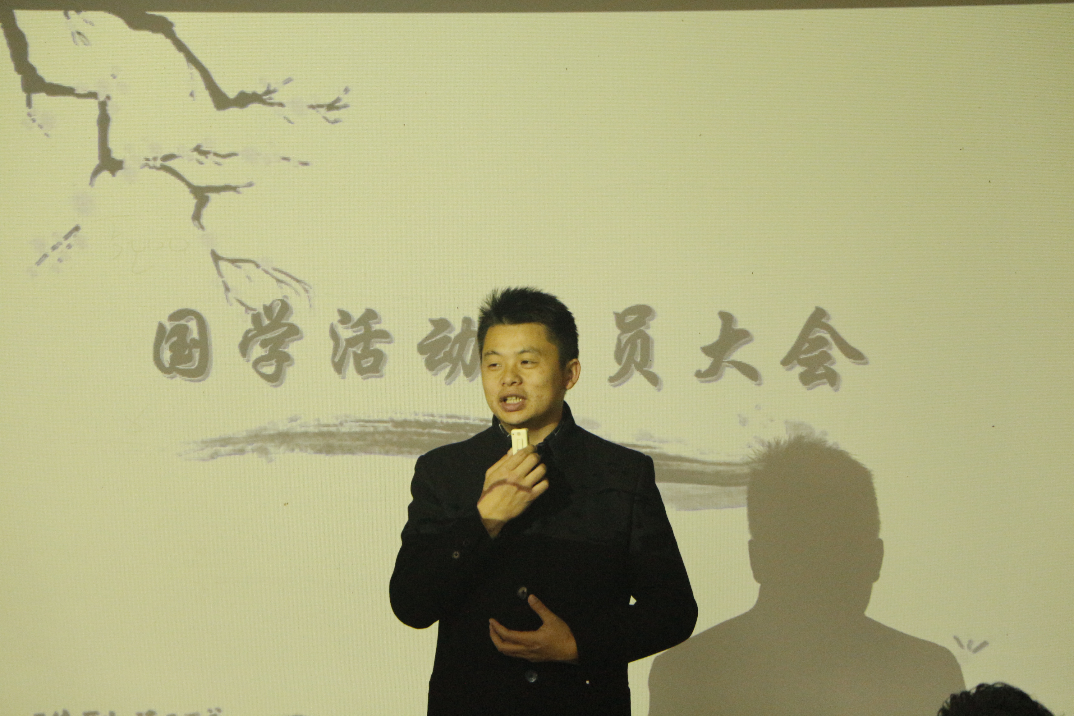 邱玉添老师首先谈到了国学文化在世界范围内的广泛传播,借此充分说明了国学是非常有价值的,认为大家应该充满这种文化自信。随后,他强调该校对于国学活动高度重视,介绍了该校关于国学教育的一系列规划和举措,例如先后成立国学社团、举办国学夏令营、开展国学讲座,近期又成立了国学教育研究院。这一系列举措旨在给全校师生创造一个走近国学、学习国学的平台和机会。最后,邱玉添老师说道:“学习国学文化是一种提升内涵、提高能力的重要方式,当代青年学习和弘扬国学既是自我发展需要,也是一种时代使命,无论从个人发展出发,还是从民族复兴的宏伟目标出发,都是极其重要的,希望大家能培养和保持学习国学的兴趣,做国学经典、国学文化的传承者、传播者。”