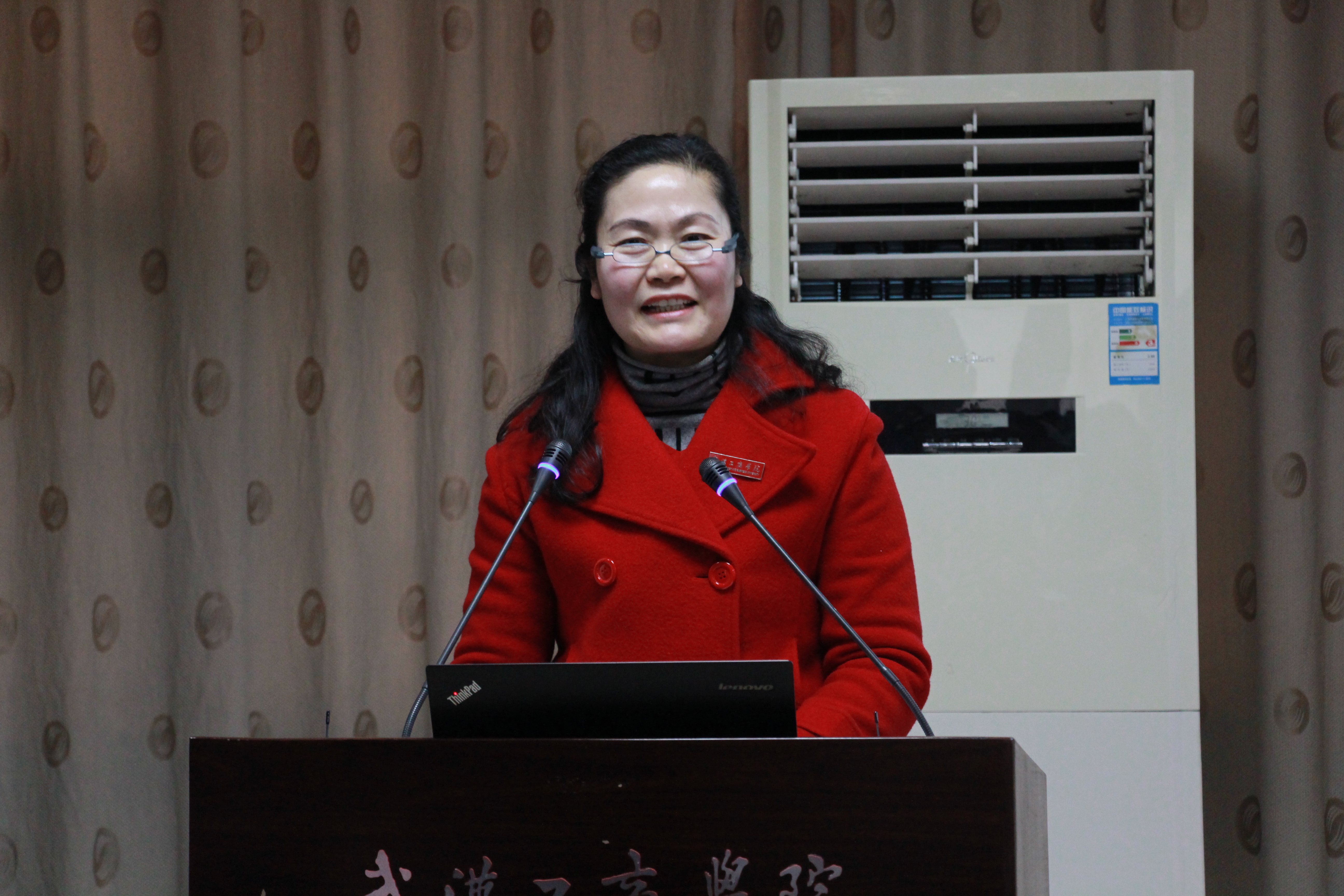 图为校工会常务副主席苏红做工作报告 摄影:孙欢欢