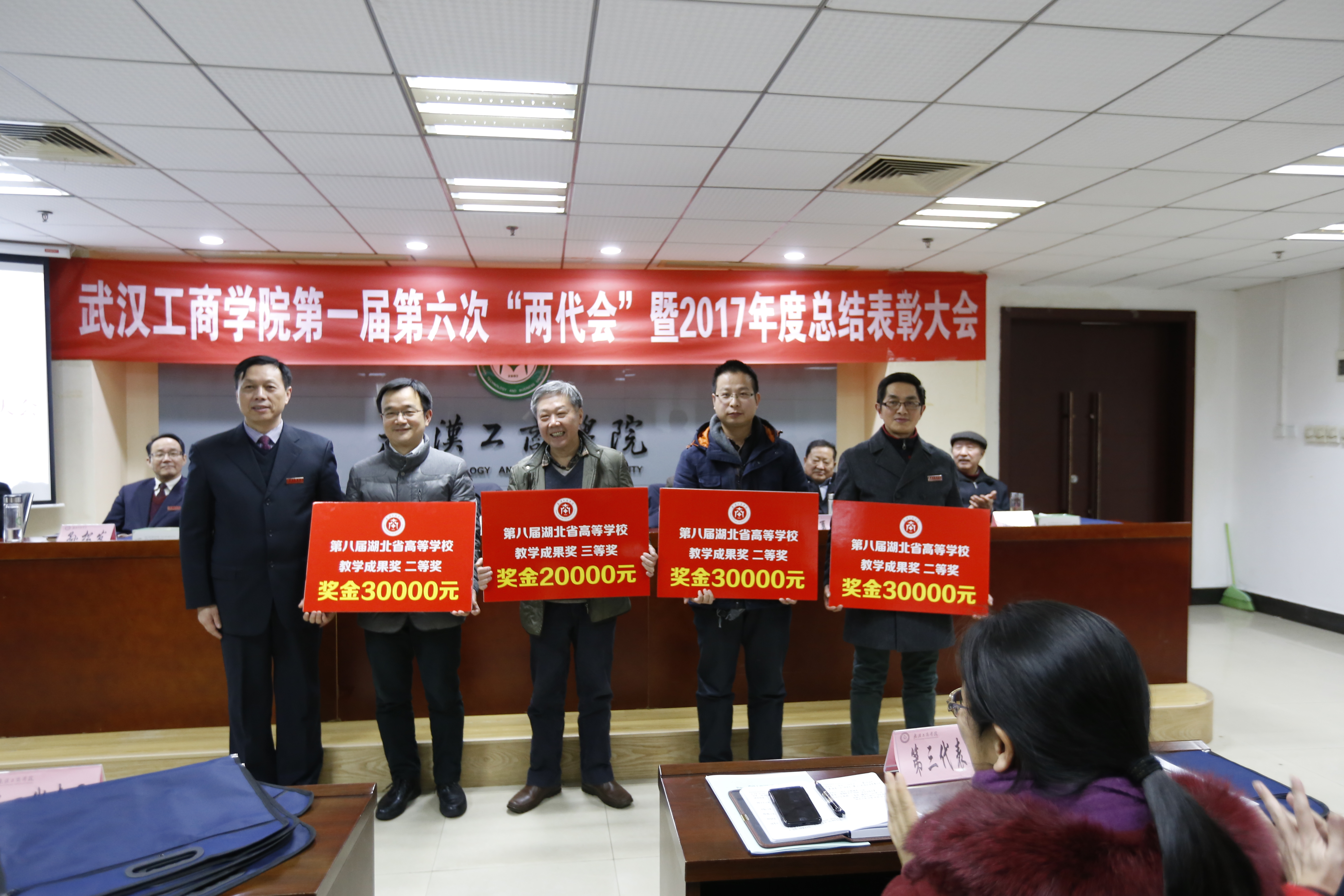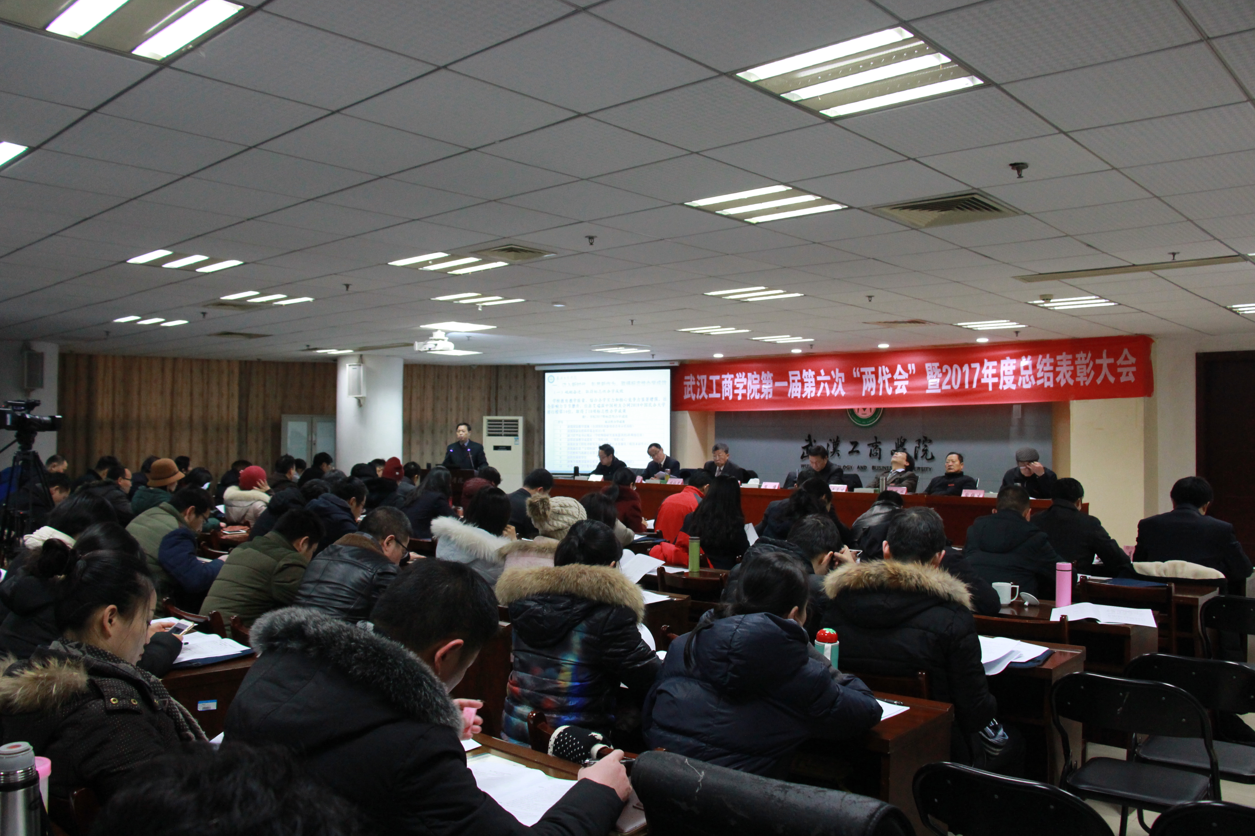 新闻中心讯(记者孙欢欢)1月25日上午8:40,beat365中文官方网站第一届教职工代表大会暨工会会员代表大会第六次会议暨2017年总结表彰大会在该校综合楼第三会议室隆重召开。校长张安富,党委书记陈伟,副校长卢炎生、桂裕清、夏再兴,党委副书记孙松发,副校长张俊,学校顾问陶梅生等出席大会,全体“两代会”代表和各奖项获奖单位、个人代表参会。大会由陈伟书记主持。