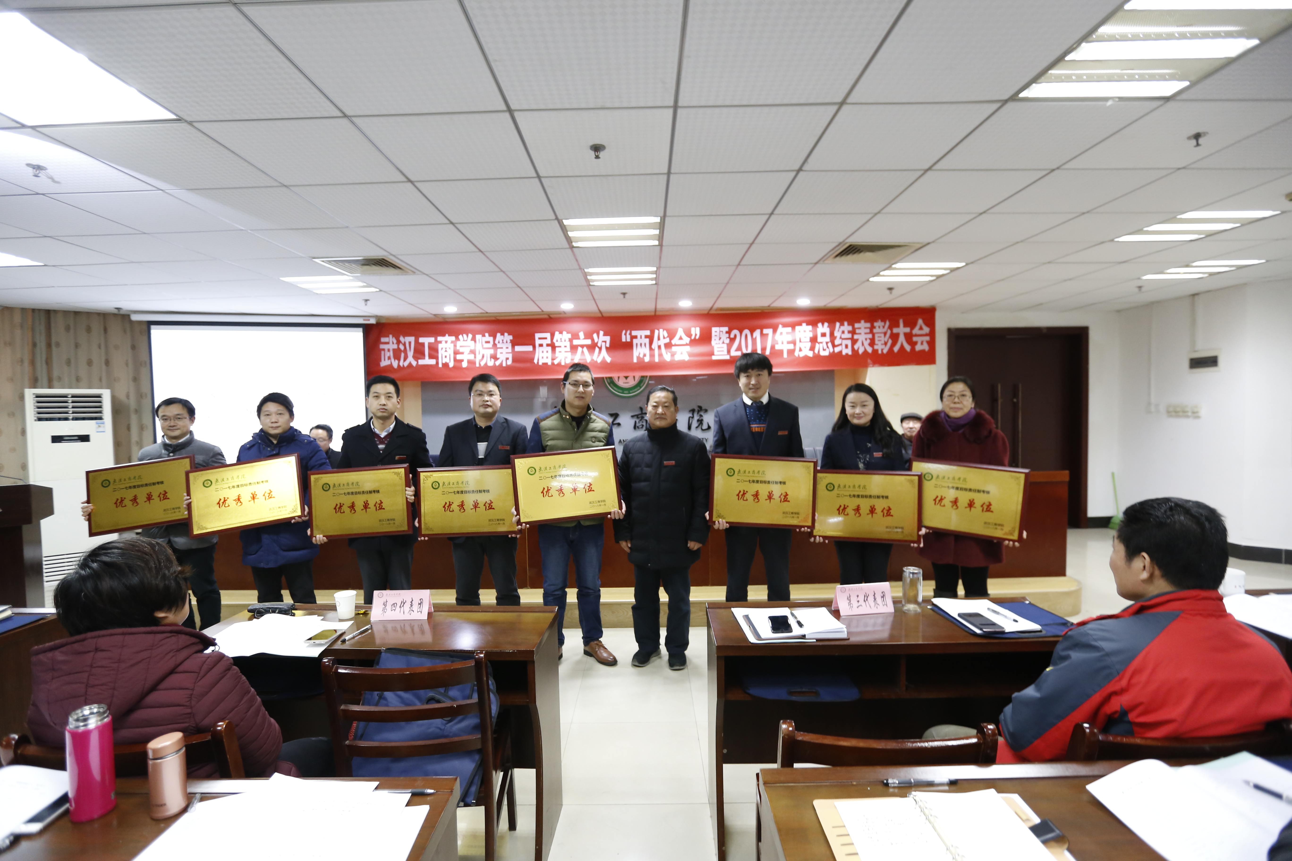 夏再兴副校长为获得“2017年目标责任制考核优秀单位”颁奖 摄影:小璐