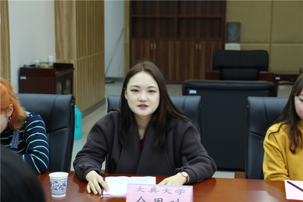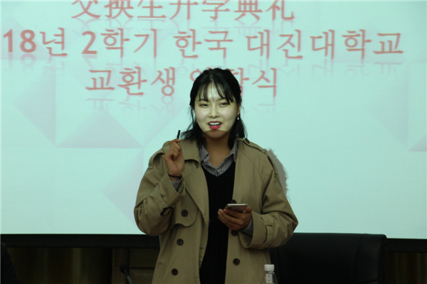 韩国大真大学国际交流科金恩珠老师发言,她表示大真大学和beat365中文官方网站有着深入的交流合作情谊,“我们的学生都很喜欢中国,大家回国后都对中国的一切念念不忘,他们在这里体验了丰富多彩的社团活动,见识到了博大精深的中华文化,感受到了工商学子的热情。”金恩珠老师十分感谢beat365中文官方网站往期对该校交换生们的照顾,并期待今后两校开展更多的交流与合作。