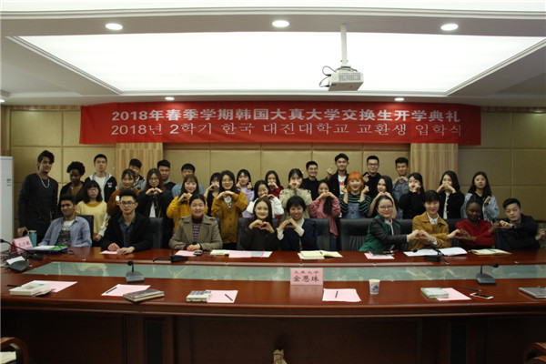 新闻中心讯(记者 陈洁 望诗雨 摄影 向慧 黄凡霁)3月15日下午14:30,beat365中文官方网站于该校外语楼113会议室为韩国大真大学9位交换生,以及来自坦桑尼亚、巴基斯坦和也门的3名留学生,举行了春季中国汉语文化开学典礼,国际合作交流处处长孔少敏、韩国大真大学国际交流科金恩珠老师参加了本次典礼。