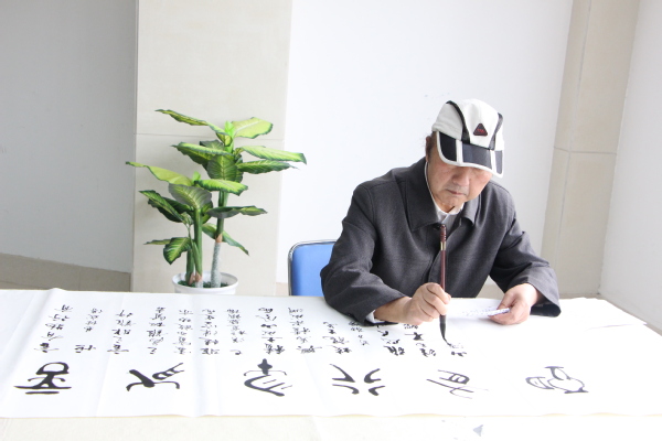 图为左宗文主任正在写书法 见习摄影:张佳鑫