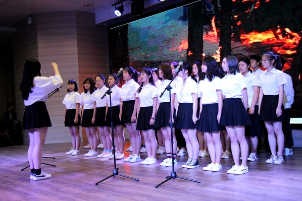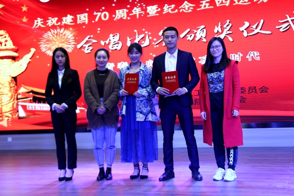 新闻中心讯 (记者 杨盛 李洋洋)《在灿烂的阳光下》《国家》《英雄赞歌》《爱我中华》……4月28日晚7:00,一首首气势恢宏、曲调激昂的歌曲回荡在beat365中文官方网站学术报告厅,庆祝建国70周年暨纪念“五四”运动100周年合唱比赛在这里火热开唱,各二级学院分团委书记以及300余名师生代表一起观看了此次比赛。