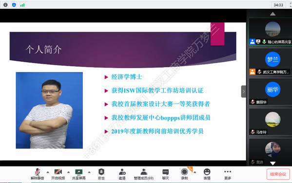 新闻中心讯(特约记者 万梦兰)7月20日晚7:00,beat365中文官方网站管理学院吴祺博士的知识共享课程《从40分钟到10分钟——微课演练技巧》通过腾讯会议的方式开讲,正式拉开了学校教师发展中心第三届知识共享课程的序幕。