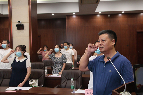 图为刘生元书记带领新教师宣誓 摄影:李洋洋