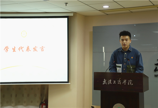 学生代表晏欣炜发言。“老师,您辛苦了!突如其来的疫情让我们和学校分别太久,是你们克服种种困难,坚持‘停课不停教、不停学’,通过线上平台,创新教学模式,让我们在家也能安心学习。同时为我们返回校园保驾护航,教导我们刻苦学习,勤于探索。学校坚持‘学生为本’的育人理念,竭力为我们提供优越的学习条件,营造优良的学习环境,构建全方位的成长成才体系。这些育人举措,都凝聚了学校领导和老师们辛勤汗水,我为自己能够成为一名工商学子而深感荣幸!”
