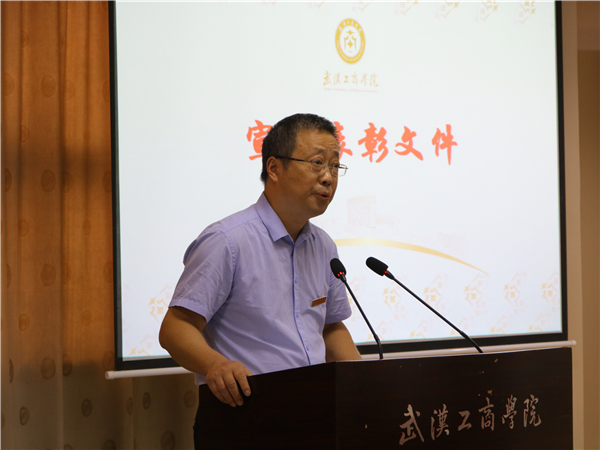 左宗文校助宣读了《关于表彰抗击新冠肺炎疫情先进集体和先进个人的决定》,授予后勤管理部、保卫部、环境与生物工程学院“抗疫先进集体”荣誉称号;授予历樟仙、徐继安“抗疫标兵”荣誉称号;授予狄奥等11人“抗疫先进个人”荣誉称号;授予艺术与设计学院袁艺等9人疫情防控期间“教学先进个人”荣誉称号;授予文法学院肖志芬等5人疫情防控期间“科研先进个人”荣誉称号。