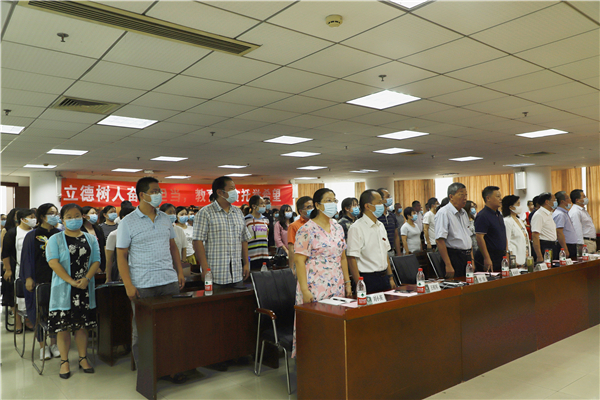 就加强师德师风建设和学校下一阶段工作,他提出以下要求,一是加强师德师风建设,落实立德树人根本任务。全体教职工要统一思想,提高认识,做有理想信念、有道德情操、有扎实学识、有仁爱之心的党和人民满意的“四有”好老师。二是打造高水平人才队伍,提升教学科研综合实力。提高对人才工作重要性认识,构建师资工作机制,营造稳定人才、干事创业的良好环境和氛围,进一步加大对师资队伍建设经费的投入。三是抢抓机遇科学谋划,实现学校高质量发展,继续推进一流专业建设,做好十四五规划的编制。最后,他表示,希望广大教师珍惜平台,以先进典型为榜样,爱岗敬业、凝心聚力、共谋发展,为学校高质量发展贡献力量。