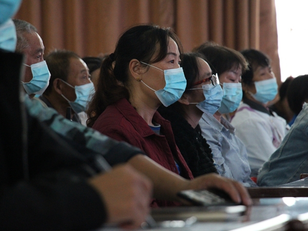 图为后勤阿姨正在认真聆听 摄影:高邱月