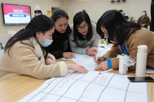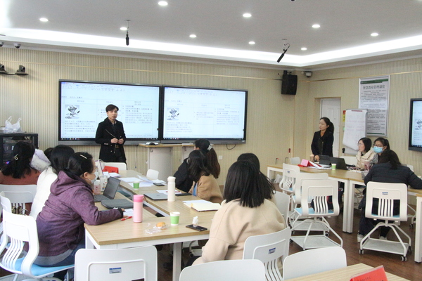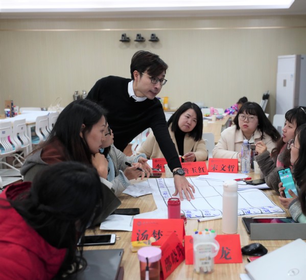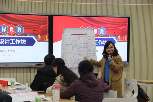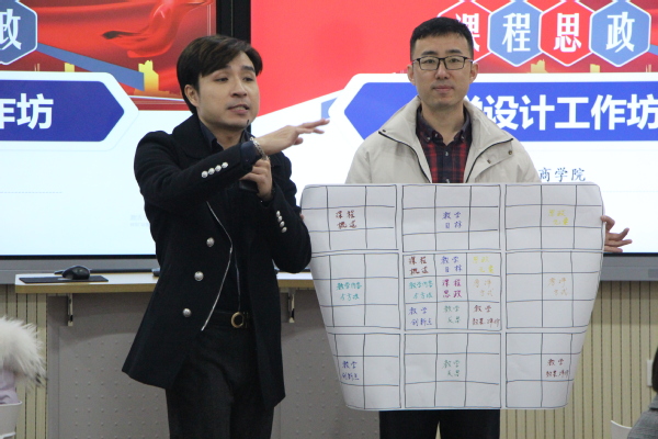 在穿插进行的教学实操环节中,吴旭平、刘学莘两位专家带领广大教师展开了课程思政设计演练,所有教师被分成两组,每位教师都需初步设计出课程思政教学方案。两位专家从课程思政整体框架、设计维度和教学融入等方面,对不同专业、不同课程进行了现场指导,并利用多种团队合作方式,通过制定课程思政教学目标、提炼课程思政教学元素、设计课程思政框架矩阵以及现场汇报展示等环节,让教师们全面理解了课程思政的实施路径、设计流程和技术方法。