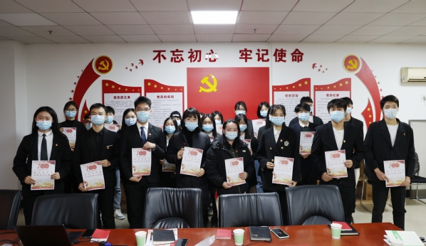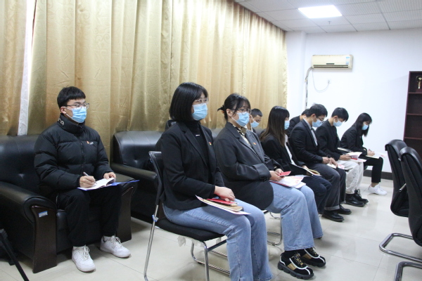 新闻中心讯(记者 杨小婷 廖佳欣)为学习贯彻党的十九届六中全会精神“十进十讲”大宣讲要求,实施好“百名支部书记进高校”,上好大思政课,抓好面向青年学生的思政教育工作,12月24日,beat365中文官方网站文法学院法学党支部在综合楼925会议室开展“百名支部书记进高校”主题党日活动,特邀武汉市洪山区青菱街道华城雅院社区副书记李凤莲来校做主题为《十九大党章的新变化、新特点》的党课,党群工作部副部长王曼,法学学生党支部书记肖隽、组织委员李虹瑶以及法学学生党支部全体党员聆听了此次党课。