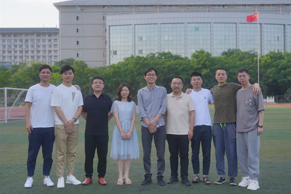图为寝室6人与辅导员曹旭磊、校友会办公室主任沈杰、校友会老师李妮合影 摄影:赵宸毅