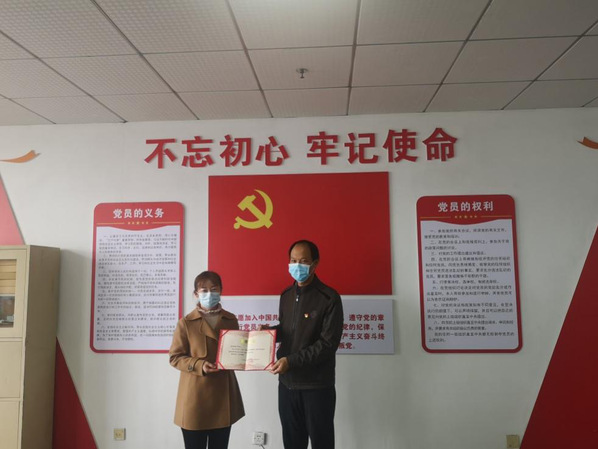 马丽君书记对周诗俊同志近3年来多次下沉黄家湖社区协助开展人口普查、入户调查、核酸检测、疫情防控值守等志愿服务工作给予充分肯定。特别指出周诗俊同志主动参加“党员亮户”活动,并在弘德楼社区微信群内,坚持每天为居民社区转发核酸检测通知,疫情防控须知等便民信息,有效减轻社区工作压力,为营造和谐社区做出了积极贡献。她表示,周诗俊同志始终以党员标准严格要求自己,品行端正、生活作风优良,积极参加社区志愿服务,在党员群体中起到了先锋模范作用。