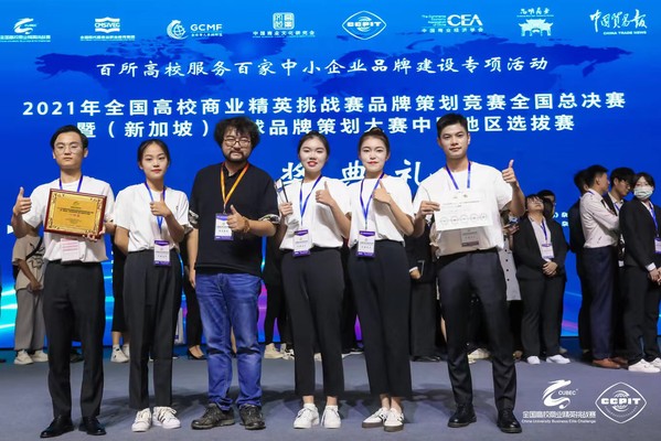 图为桂羽勤(右三)和同学们在全球品牌策划大赛中国地区选拔赛中获一等奖
