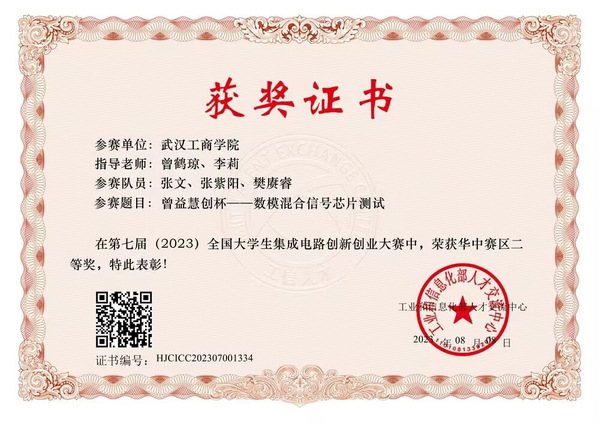 此次获奖的4支队伍由人工智能学院教师金侃、李莉、曾鹤琼共同指导,其中由学生张文、张紫阳、樊赓睿组成的“BoomX队”设计的芯片获得华中分赛区决赛二等奖;“猩猩干饭队”“打不完赶紧开派队”“玩游戏怎么不队”3支队伍获得华中分赛区三等奖。