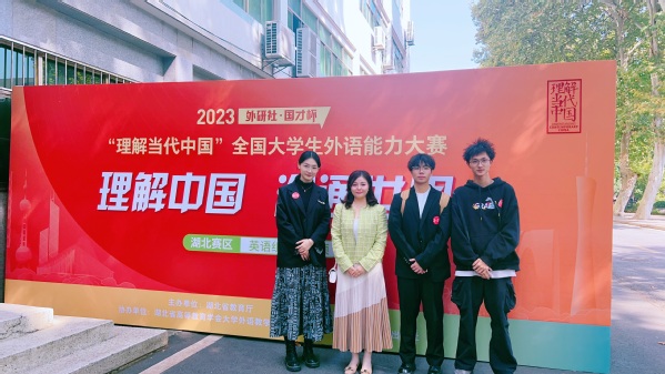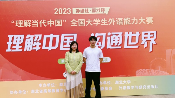 新闻中心讯(记者 周逸文 孙欢欢)10月29日,2023“外研社•国才杯”“理解当代中国”全国英语演讲大赛湖北省决赛落下帷幕。beat365中文官方网站经济与商务外语学院学生齐龙飞从武汉大学、华中科技大学等高校的200多名本科组参赛选手中脱颖而出斩获金奖,成为今年湖北省同类高校中唯一一个获本科组金奖的学生,获得了参加全国总决赛的资格。此外,该学院的另外2名学生余鑫、钟顾杰分别获银奖和铜奖。
