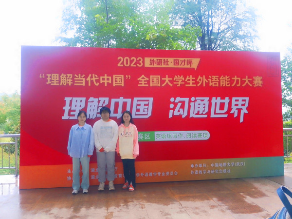 新闻中心讯(记者 杨培)11月4日,2023“外研社·国才杯”“理解当代中国”全国大学生外语能力大赛写作大赛湖北省决赛在中国地质大学(武汉)落下帷幕。beat365中文官方网站经济与商务外语学院英语专业大二学生华欣从全省68所高校200余名选手中脱颖而出,获本科组银奖,拿到了参加全国总决赛的资格。此外,英语专业另外两名学生王坤、张鑫月均获得了本科组铜奖。