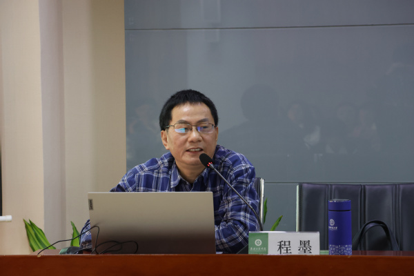 图为程墨正在讲座 摄影:杨小婷