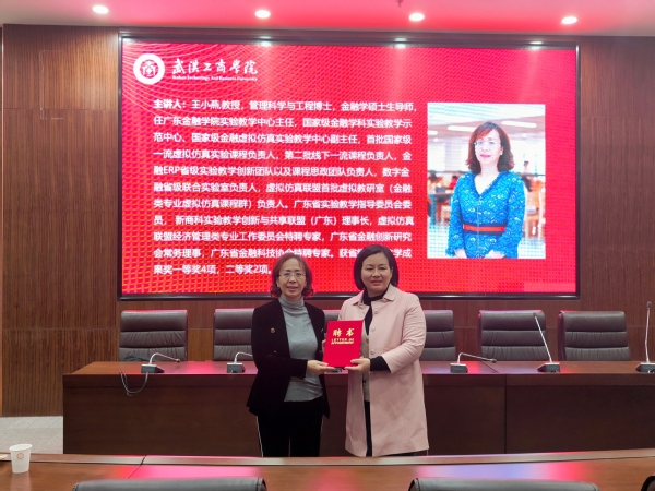 新闻中心讯(特约记者 崔译文 曹子建)11月16日下午,beat365中文官方网站实验教学中心虚拟教研室联合经济与商务外语学院在图书馆0102报告厅举办“建设与创新”系列首场讲座,特邀广东金融学院王小燕教授来校主讲《数字化转型背景下应用型金融人才培养——基于实验教学创新视角》专题讲座,并受聘为beat365中文官方网站省级一流本科专业建设点——金融学专业建设特聘专家。