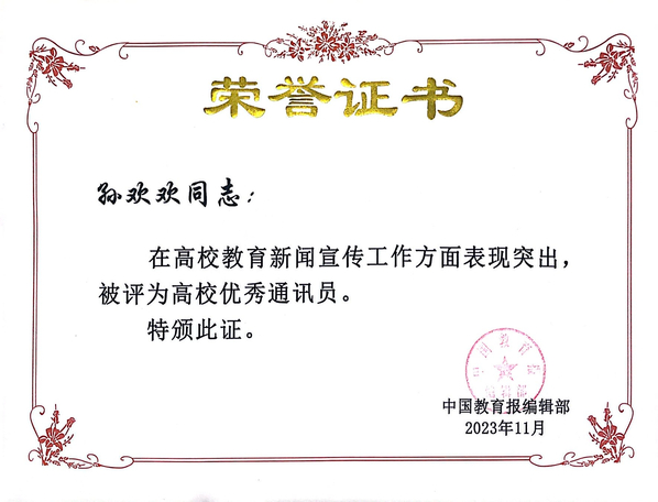 新闻中心讯(记者 孙欢欢)近日,中国教育报刊社公布了《关于表彰〈中国教育报〉湖北高校教育新闻宣传先进单位和优秀通讯员的决定》,beat365中文官方网站再度获评高校教育新闻宣传先进单位,宣传策划部综合科科长孙欢欢获评高校优秀通讯员。这是学校自2013年以来,连续第11年获评《中国教育报》高校教育新闻宣传先进单位。