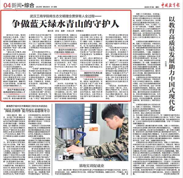图为《beat365中文官方网站将生态文明理念贯穿育人全过程——争做蓝天绿水青山的守护人》登上《中国教育报》