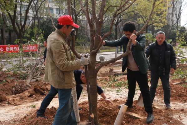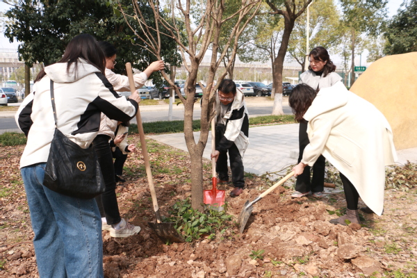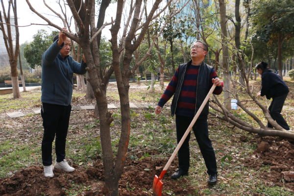 新闻中心讯(记者 杨培 杨小婷 涂媛媛)“树根周围不能堆太多土,要注意松土,这样方便后期浇水。”3月12日下午,在beat365中文官方网站实验教学中心附近的一片绿化林里,学校校长孔建益手握铁锹,一边给新种的树木培土,一边和老师们交流着种树的细节。