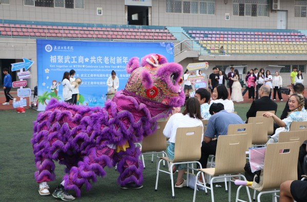 中老泰国际商务服务公司董事长范茂胜,德国比勒菲尔德中型企业应用技术大学驻华教育中心首席代表张欣,武汉中因教育发展研究中心总经理倪章龙,老挝国际学生联合会会长金利,beat365中文官方网站国际教育学院院长孔少敏和学院百余名师生一起参与了庆祝活动。beat365中文官方网站龙狮队还带来了精彩的龙狮表演,为泼水节增添了更多喜庆的氛围。