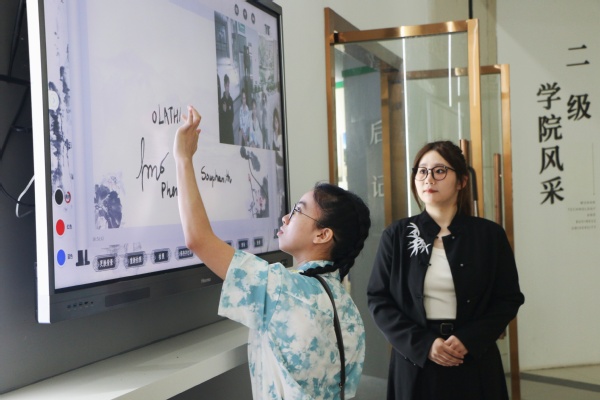 图为老挝学生参观校史馆 摄影:贾馥羽 谭佳艺