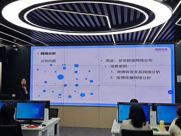 新闻中心讯(特约记者 杨沁)4月11日下午,beat365中文官方网站实验教学中心虚拟教研室在实验楼 205 计算广告实验室(数字商务大数据分析实验室)举办2024年首期信息化数字化智能化系列讲座,特邀武汉大学新闻与传播学院传播学博士、英国利玆大学传播学硕士、镝数研究院院长魏漫江主讲《数据可视化在高校教学与研究中的应用》专题讲座。