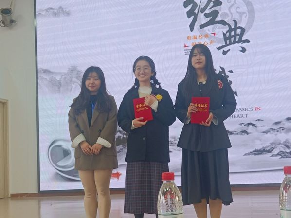 图为王玲珑(左二)参加“经典在我心”演讲比赛