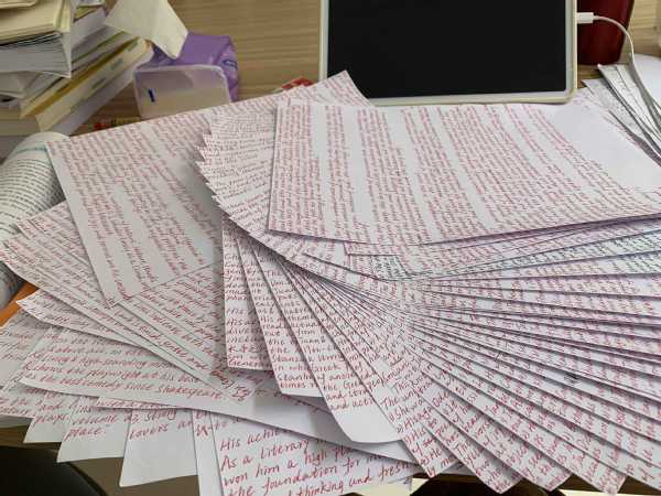 去年9月份,为了提升“冲刺”阶段的复习效率,她开始整理自己的考研笔记,用醒目的红笔将所有复习材料、考研真题中的重点、难点内容写在一张张A4纸上。两个多月的时间,她手写了100多页密密麻麻的英语考研笔记。除此之外,她还把近10年的考研真题答案基本背了下来。在最后一个月的时间里,她反复巩固、复习考研笔记上的内容,并不断通过模拟考试检测自己的学习成效。