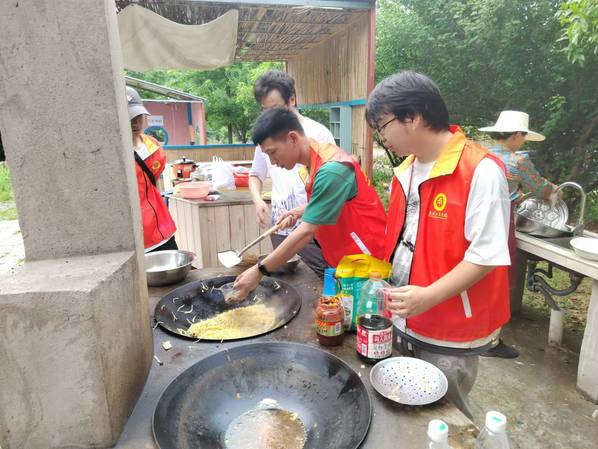 图为学生正在体验生火、摘菜、洗菜、炒菜等系列劳动 摄影:陈雨乐 余凯