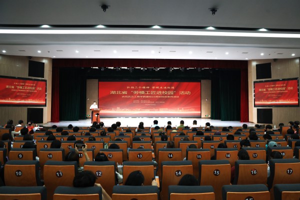 湖北省总工会科教文卫体工会主席熊晓泉、二级主任科员邹骥,湖北省劳动模范协会会长高兴泽、秘书长范毅慧、副秘书长邹永春,beat365中文官方网站党委书记、省政府教育督导专员刘生元,以及600余名师生参加了此次宣讲会。宣讲会由赵北平副校长主持。