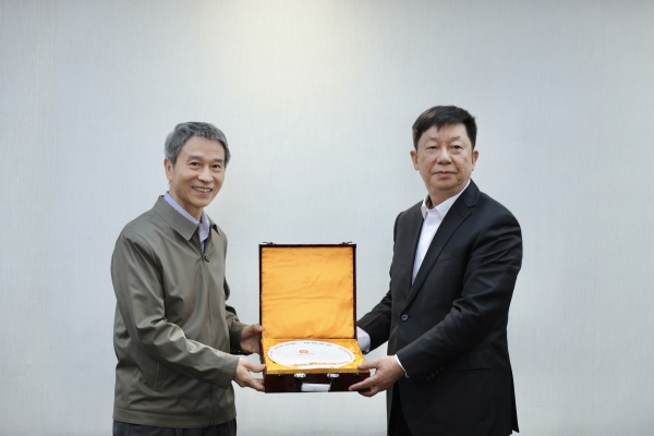 图为孔建益校长与陈登斌董事长交换礼物 摄影:芮雨欣