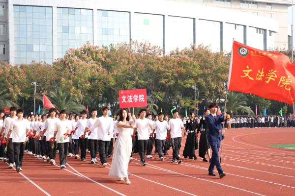 伴随着雄壮激昂的《运动员进行曲》,国旗队以及来自各二级学院的师生代表队昂首挺胸、英姿飒爽,迈着铿锵有力的步伐依次入场,大家各出奇招,通过服装走秀、啦啦操、现代舞、双人舞等各具特色的表演,展现出师生奋发昂扬、活力四射的精神风貌和青春风采,赢得现场阵阵掌声。